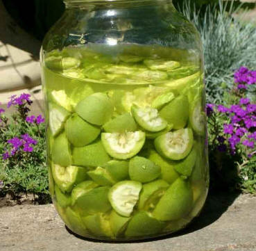 A questo punto il barattolo dovrà essere chiuso ermeticamente e posto per quaranta giorni al sole. Ogni giorno dovrà essere agitato per mescolare gli ingredienti. Trascorso questo tempo verrà filtrato per ottenere la parte liquida alla quale si aggiungerà uno sciroppo ottenuto con acqua e zucchero completamente sciolto (in alcune regioni si usa il vino bianco al posto dell’acqua).