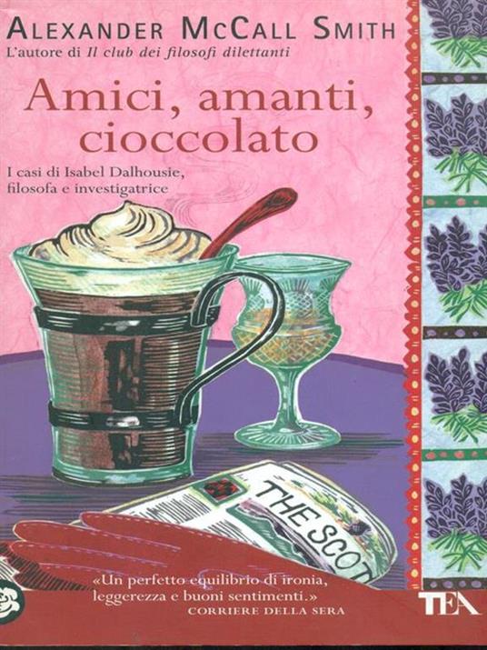 Amici, amanti, cioccolato di Alexander McCall, TEA, 2008 (traduzione di Giovanni Garbellini) Amici, amanti, cioccolatoè il secondo libro della serie di romanzi I casi di Isabel Dalhousie, filosofa e investigatrice dello scrittore britannico Alexander McCall Smith. La vicenda si svolge in Scozia, precisamente nell’affascinante Edimburgo, e la protagonista, neanche a dirlo, è Isabel Dalhousie, sofisticataContinua a leggere “Amori, amanti, cioccolato”